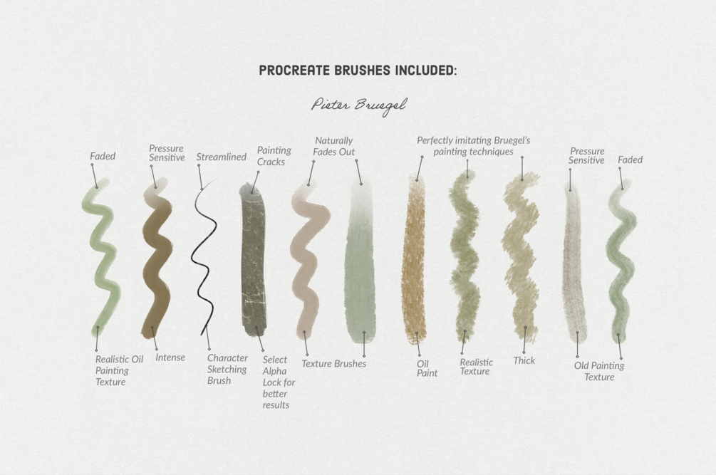 - 11 Pieter Bruegel's Procreate Brushes (.brush & .brushset)