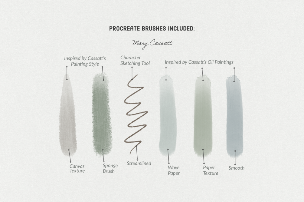 Mary Cassatt's Procreate Brushes & Swatches are specially designed for Illustrators and Graphic Designers.