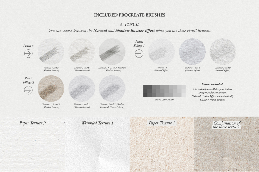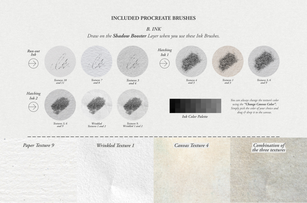 - 1 Customisable Procreate File, containing 13 different paper and 9 canvas textures (Endless Combinations - Dimensions: 5715 x 3954px)