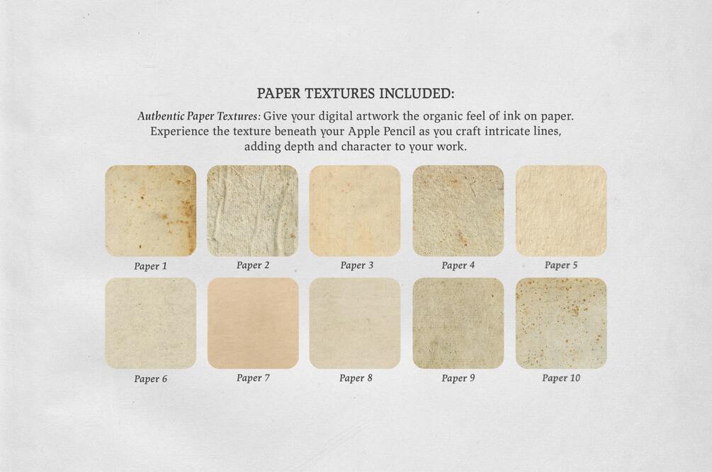 Offering sixteen procreate brushes, thirty color swatches and ten paper textures we bring you the aesthetic of these remarkable illustrations into your iPad.