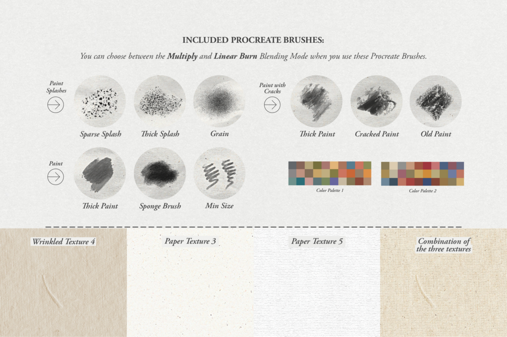 - 2 Customisable Procreate Files, containing 13 different paper, 5 canvas and 9 wrinkles and crease textures (Endless Combinations - Dimensions: 4,606 x 6,260 px)