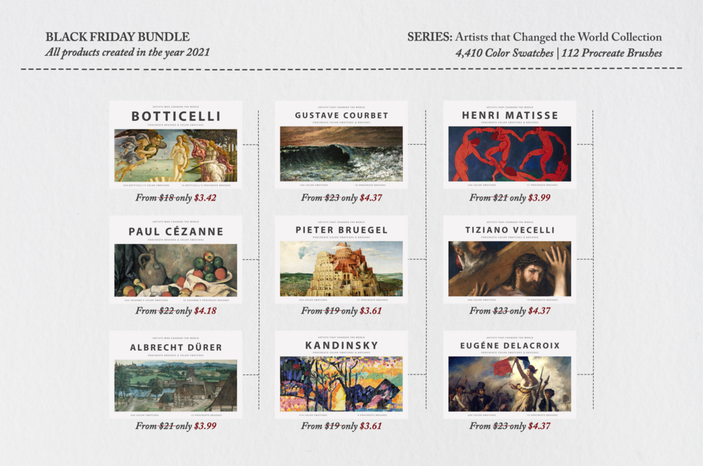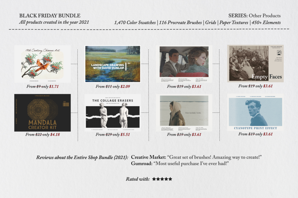 This year we also give away all the products our shop created in 2021 (21,014 items) for $0.01 per item introducing the Black Friday Entire Shop Bundle (2021).
