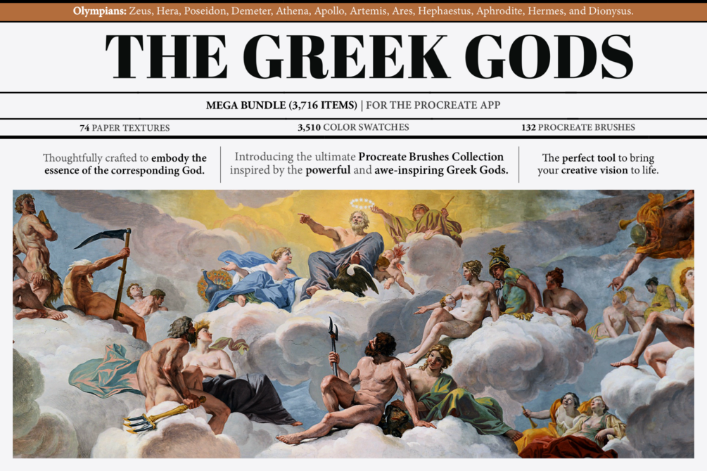 The Greek Gods Collection Mega Bundle (Procreate Brushes, Textures & Color Palettes)