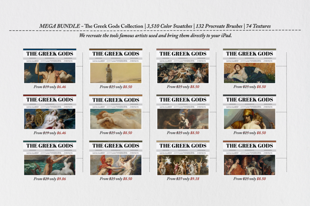 The Greek Gods Collection Mega Bundle (Procreate Brushes, Textures & Color Palettes)