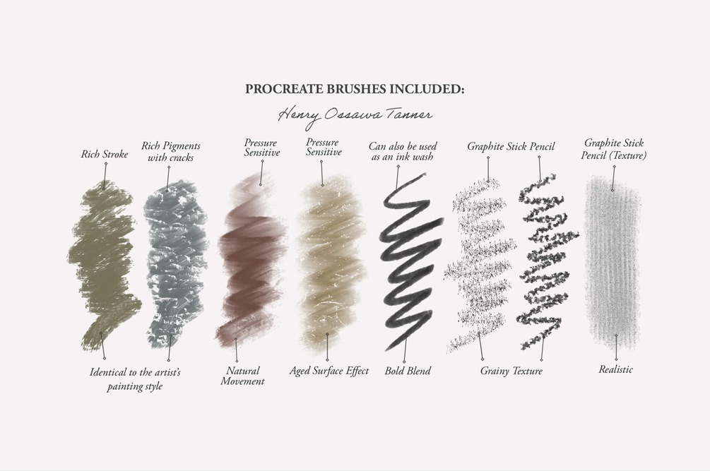 Henry Ossawa Tanner's Procreate Brushes & Color Swatches are specially designed for Illustrators and Graphic Designers.