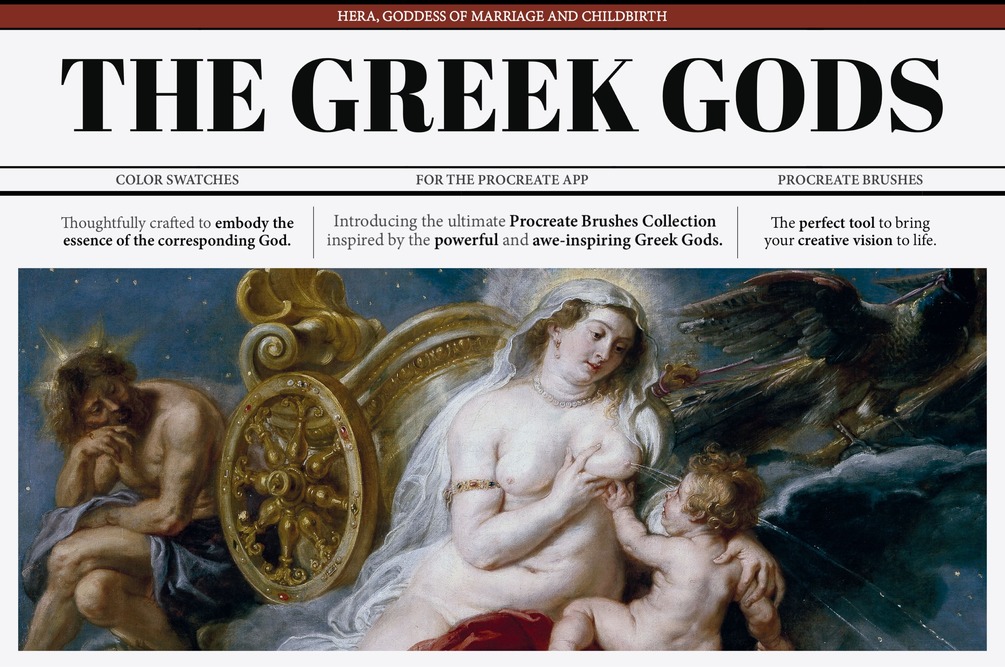 - 150 Procreate Color Swatches inspired by Hera, Goddess of marriage and childbirth.