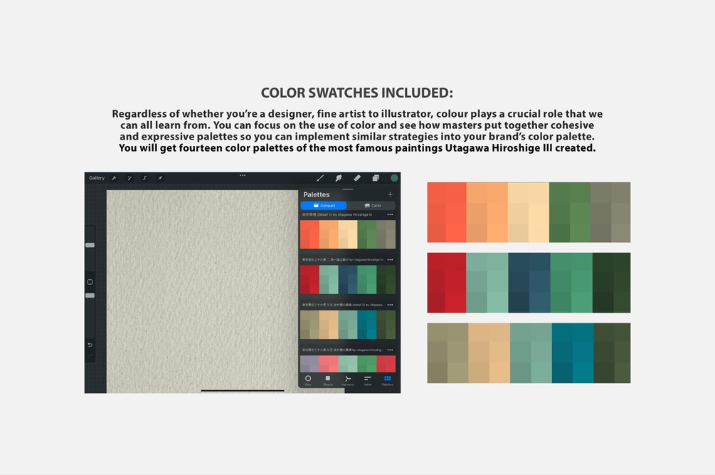 Watch in the attached YouTube Video the Hiroshige III Procreate Kit in action.