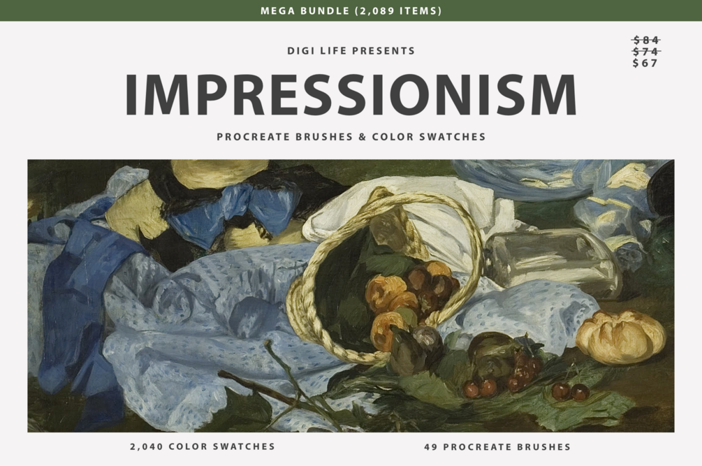 Impressionism Collection Mega Bundle (Procreate Brushes & Color Swatches)