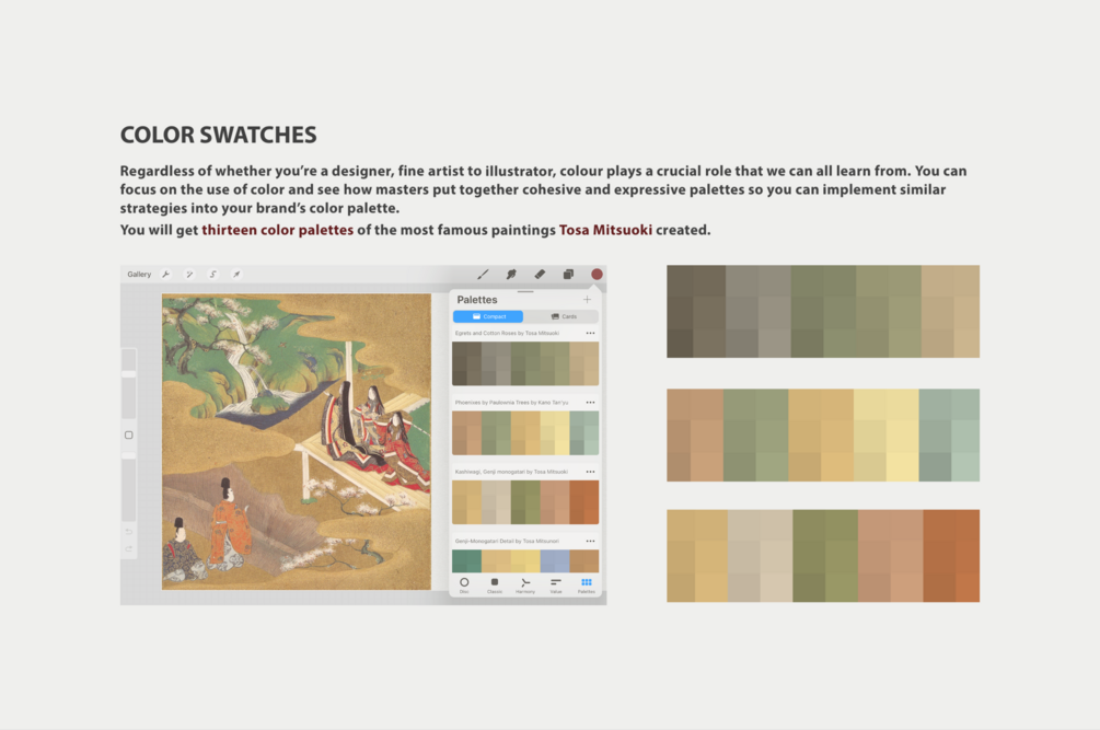 Tosa Mitsuoki Procreate Brushes, Color Swatches & Paper Textures