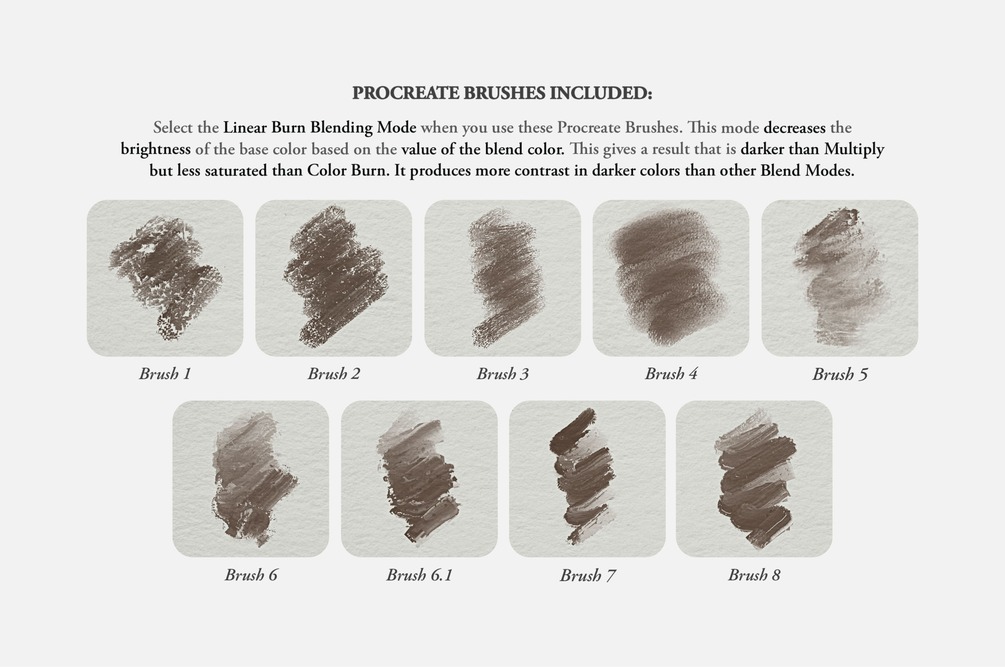 IMPORTANT: These brushes are compatible only with Procreate for iPad. They won't work in Photoshop or other painting programs.