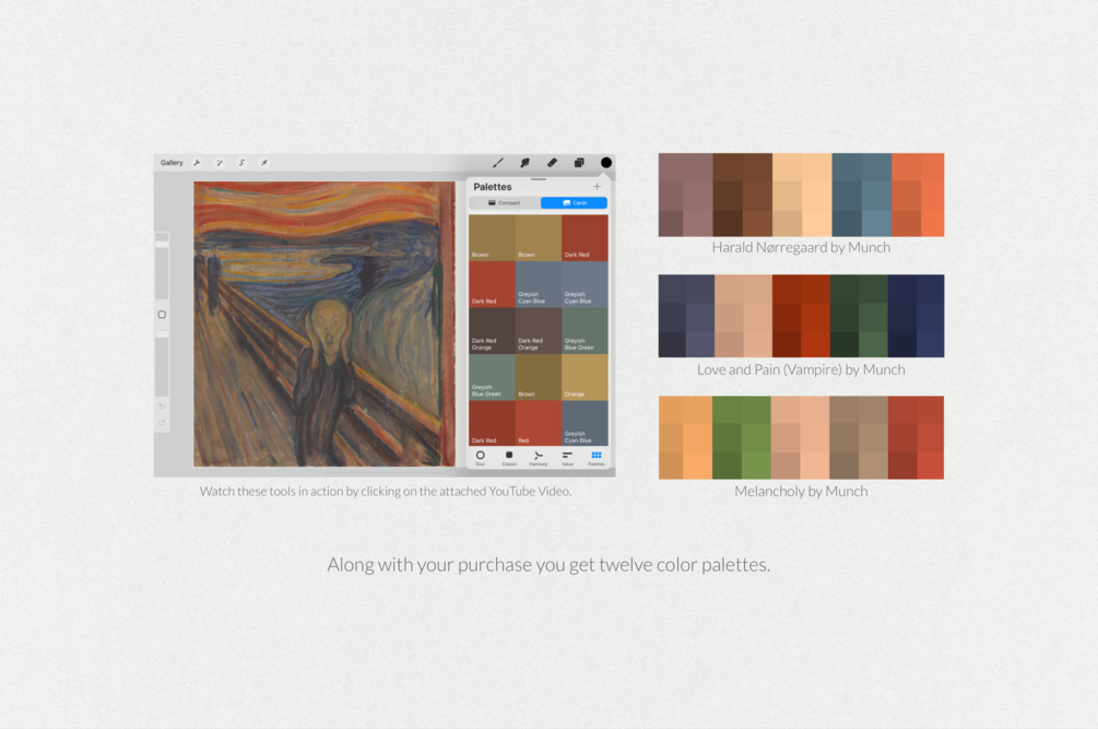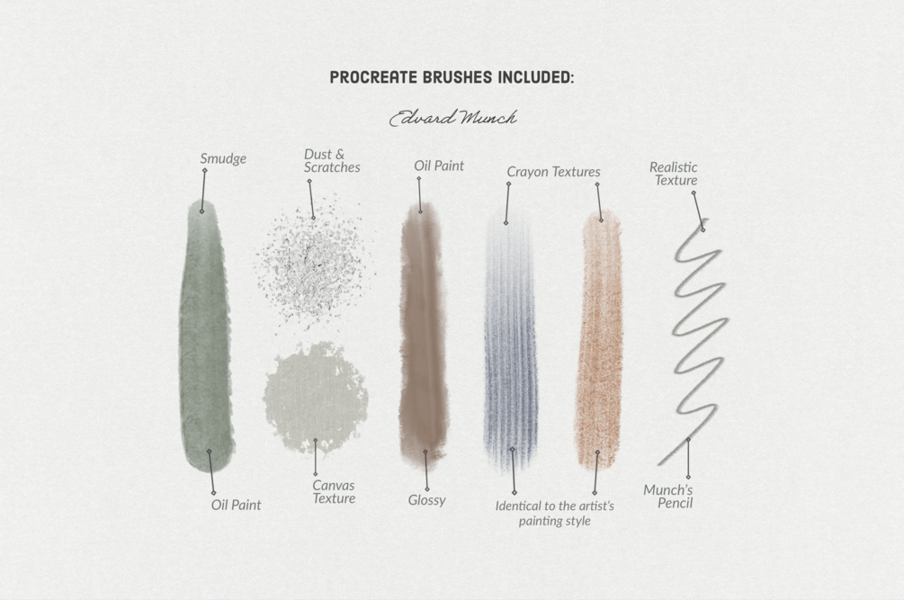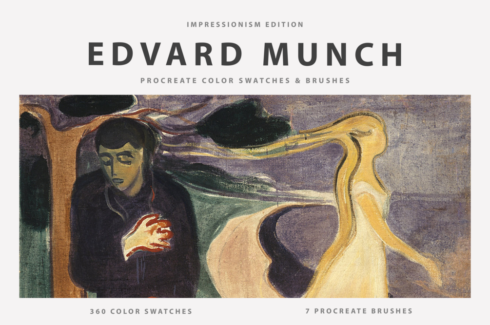 Edvard Munch's Procreate Brushes & Swatches are specially designed for Illustrators and Graphic Designers.
