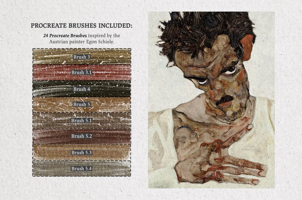 Egon Schiele Procreate Kit (Procreate Brushes, Color Palettes & Paper and Canvas Textures)