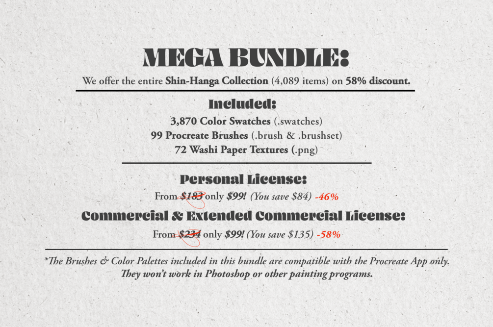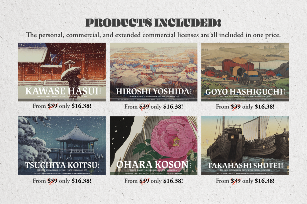 The Shin-Hanga Collection | Mega Bundle (Procreate Brushes, Washi Textures & Color Palettes)