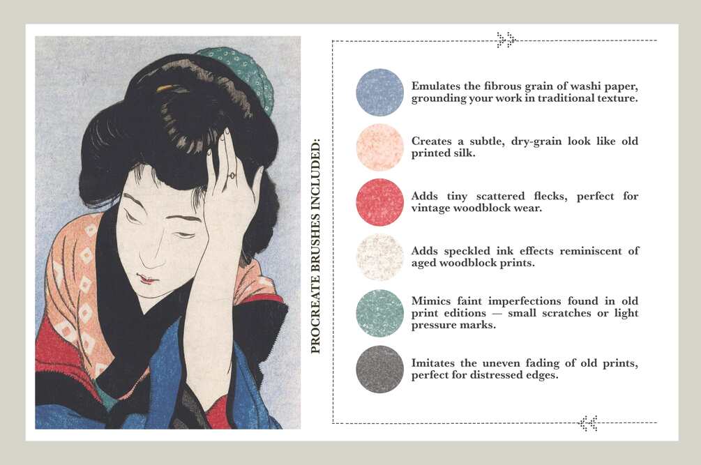 Ito Shinsui Procreate Kit (Procreate Brushes, Color Palettes & Woodblock Textures)