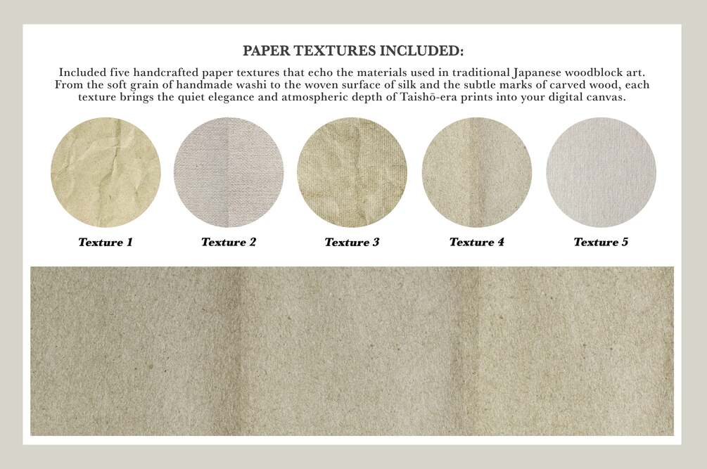 5 Woodblock Textures (.PNG files) inspired by the original textures Ito Shinsui used.