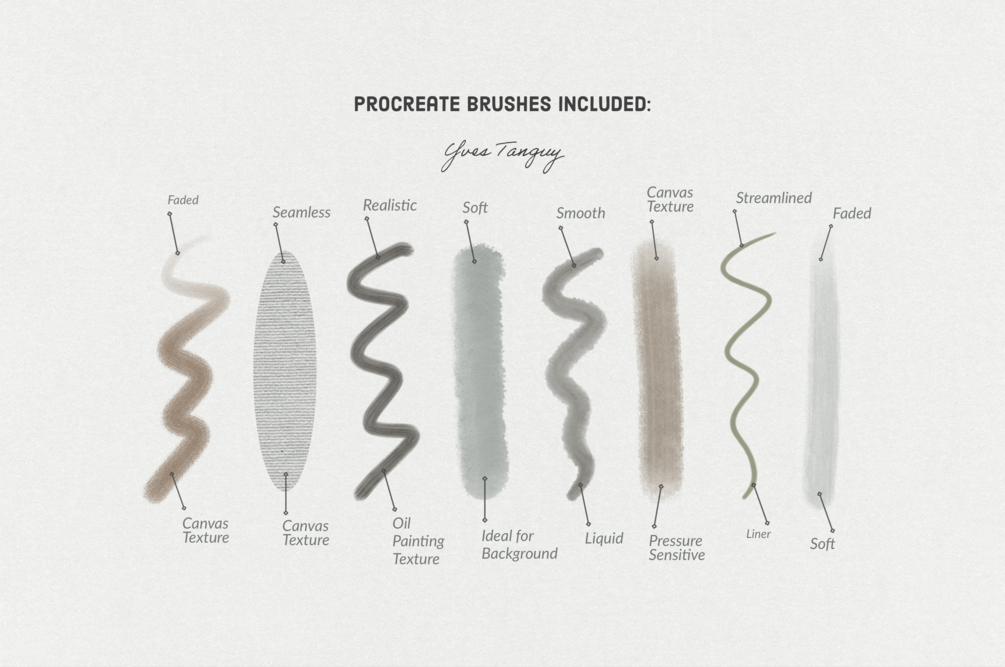 - 8 Yves Tanguy's Procreate Brushes (.brush & .brushset)