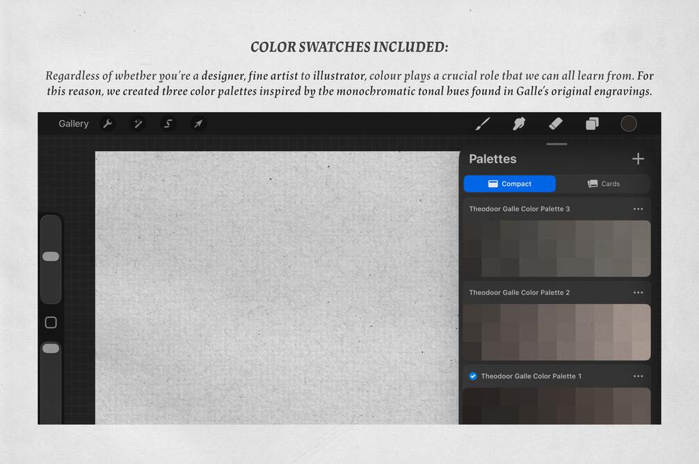 Theodoor Galle Procreate Kit (Procreate Brushes, Paper Textures & Color Palettes)