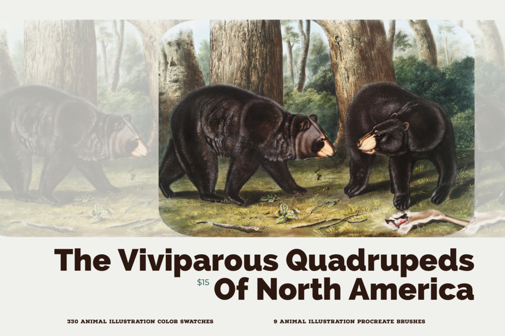 The Viviparous Quadrupeds of North America Procreate Brushes & Color Swatches are specially designed for Animal Drawing.