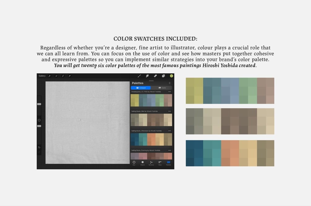 Hiroshi Yoshida Procreate Kit (Procreate Brushes, Color Palettes & Washi Textures)